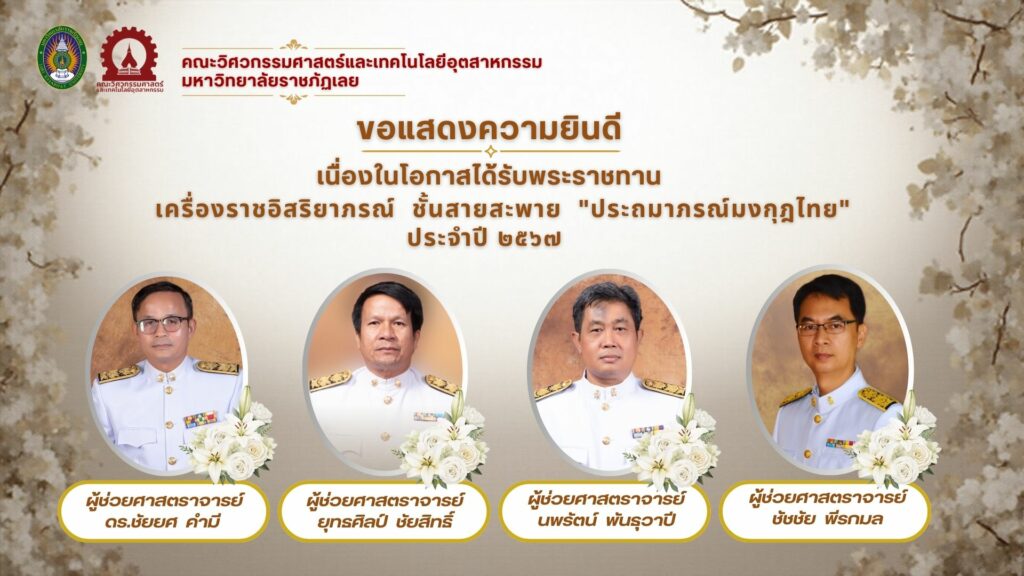 ขอแสดงความยินดีกับ รองศาสตราจารย์ศักดิ์ชาย พวงจันทร์ คณบดีคณะวิศวกรรมศาสตร์และเทคโนโลยีอุตสาหกรรม