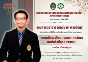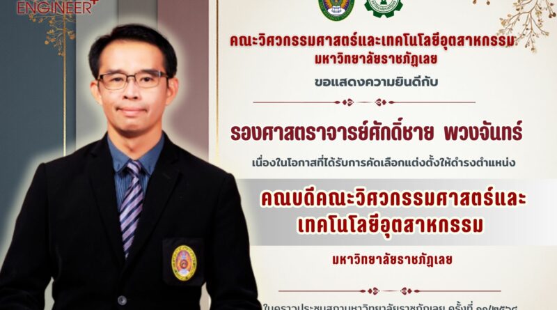 ขอแสดงความยินดีกับ รองศาสตราจารย์ศักดิ์ชาย พวงจันทร์ คณบดีคณะวิศวกรรมศาสตร์และเทคโนโลยีอุตสาหกรรม